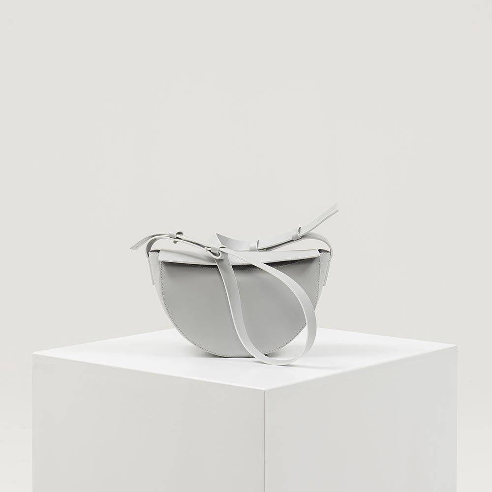 adjustable strap dim. 27*18*11. A round bag with a clean shape and compact size that plays with concave and convex lines.